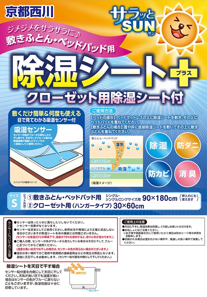 お使いの敷布団やベッドパッドの下に敷くことで一年中お使い頂ける簡単便利な除湿シートです。