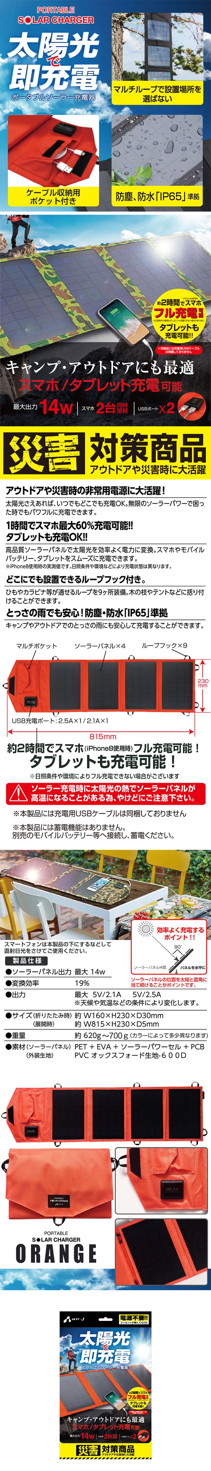 - [オレンジ] air-J(エアージェイ)/ポータブルソーラー充電器 最大出力14W/AJ-SOLAR14W OR