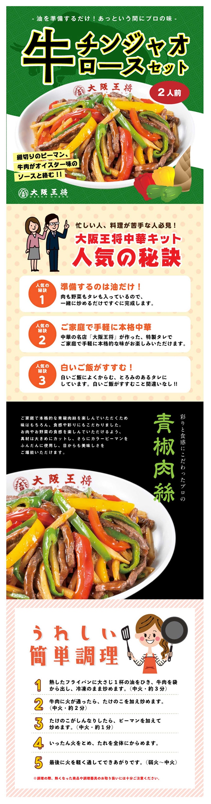 [計40食]大阪王将 牛チンジャオロースセット 2人前 | 油を準備するだけで!あっという間にプロの味!