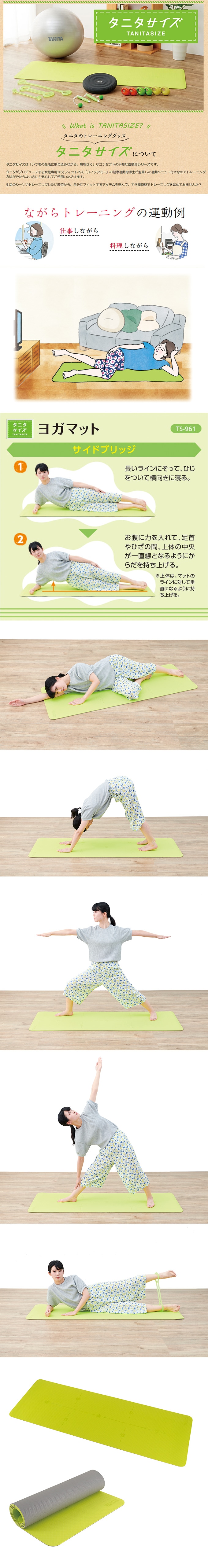 TANITA(タニタ)/タニタサイズ エクササイズマット(グリーン)|伸びにくく、滑りにくい!手足を置くポイントが確認できるラインとマーク入っていてヨガのポージングなどに便利!エクササイズメニュー付き