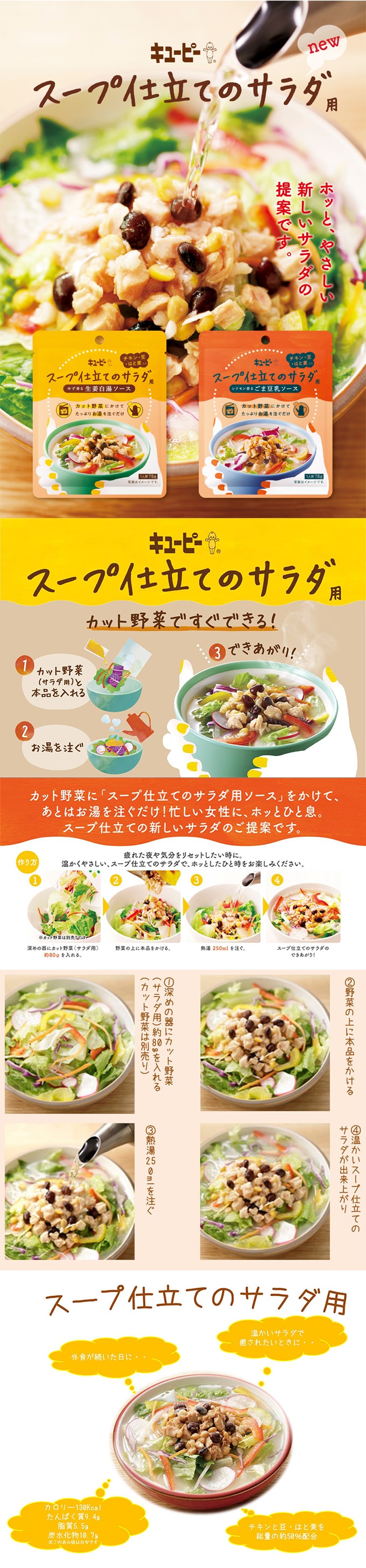[24個] キユーピー スープ仕立てのサラダ用 シナモン香るごま豆乳ソース 78g | カット野菜とお湯を用意するだけで「スープ仕立てのサラダ」が手軽に作れる!