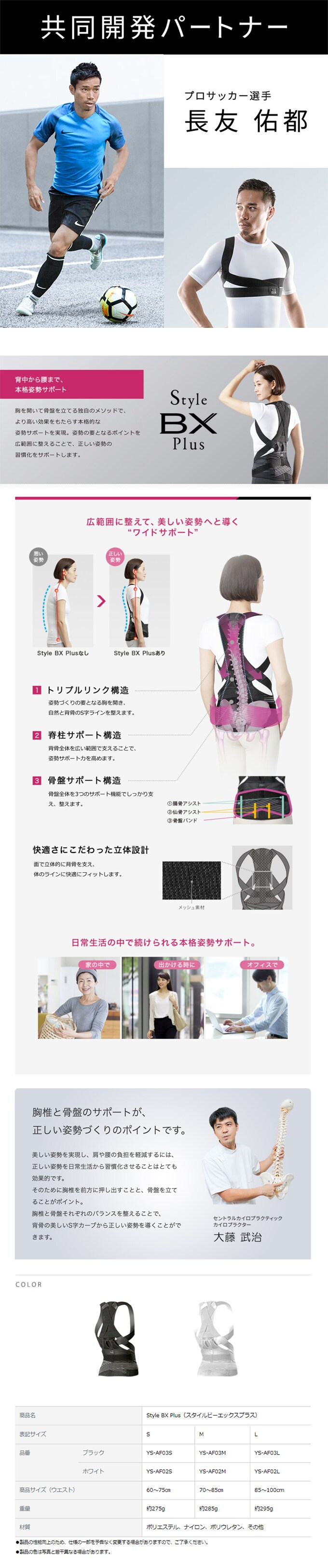 [ホワイト/S] MTG正規品/Style BX Plus (スタイルビーエックスプラス)/YS-AF02S|背中から腰まで、本格姿勢をサポート。