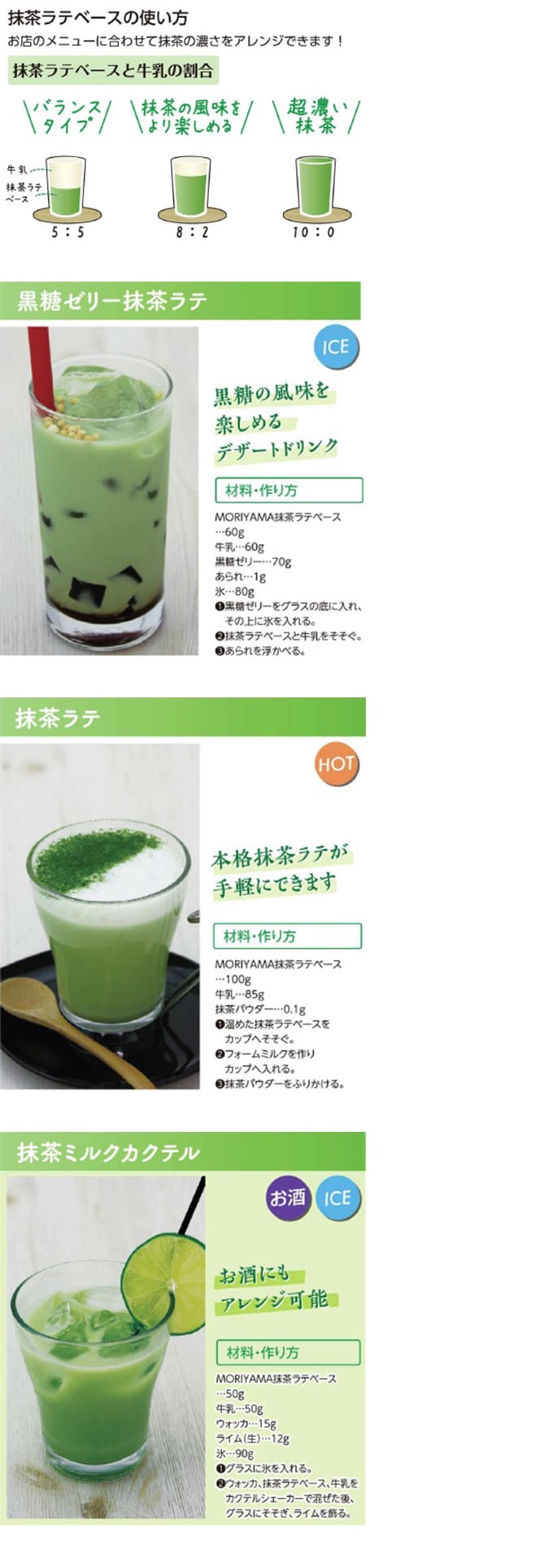 [12個]MORIYAMA抹茶ラテベース 500g | 牛乳と割って使う抹茶ラテのベースです。抹茶には宇治抹茶の一番茶も使用しています。