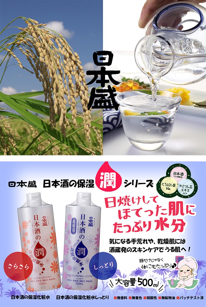 コメ発酵液と酒粕エキス配合でお肌ひきしめ、しっとり潤う日本酒化粧水。無香料・無着色で顔はもちろん、全身ローションとしてお使い頂けます。
