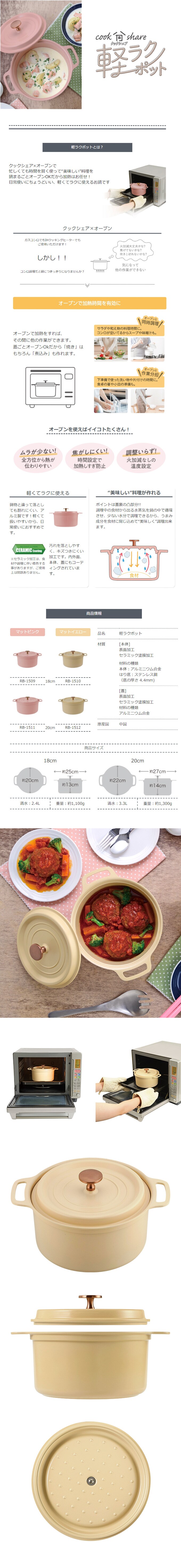 - [18cm/マットイエロー] 和平フレイズ/クックシェア 軽ラクポット/RB-1510