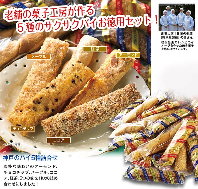 [2個]神戸のパイ5種詰合せ | 老舗の菓子工房が作る5種のサクサクパイお徳用セット!