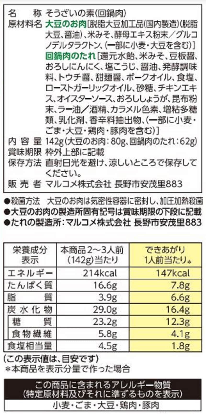 - ダイズラボ 回鍋肉 142g