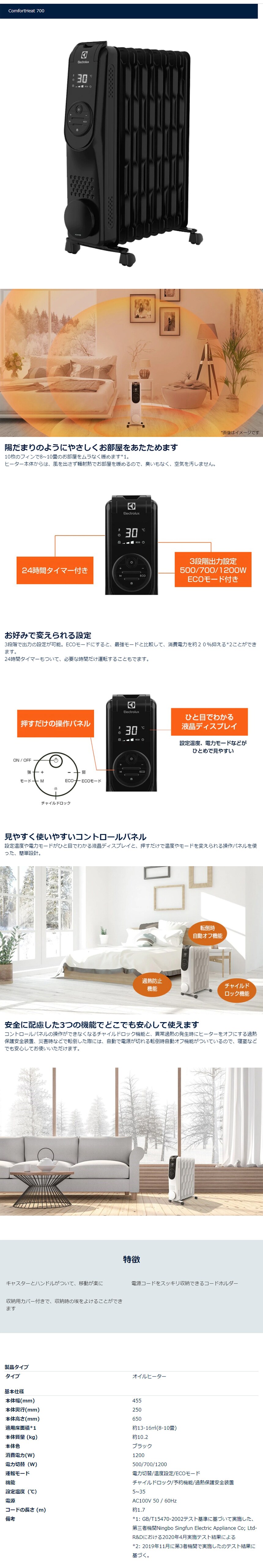 エレクトロラックス/ComfortHeat 700 オイルヒーター (ブラック)/EO12D102C0|陽だまりのようにやさしくお部屋をあたためる。