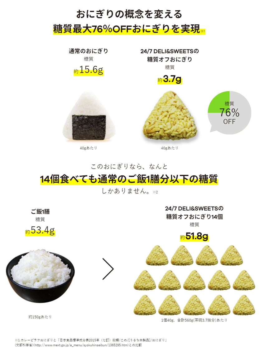 同量のおにぎりと比べて糖質55%オフ!糖質制限ダイエットのために開発したプチサイズおにぎりです。