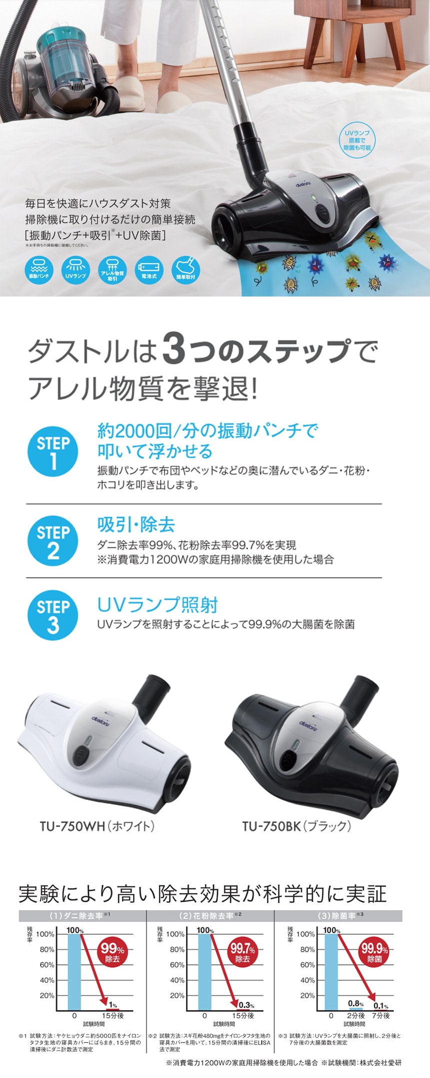 [ホワイト] スリーアップ/ふとん専用ノズル 「ダストル」/TU-750-WH|毎日を快適に!掃除機に取り付けるだけの簡単接続!布団の干しづらい時期(梅雨・花粉・黄砂・PM2.5)に活躍!
