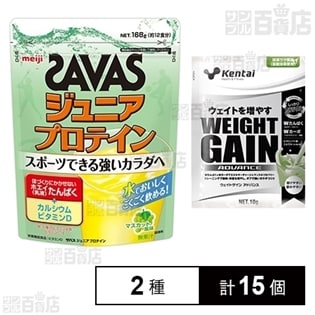 [2種計15個]ザバス ジュニアプロテイン マスカット 12食分×5袋/ウェイトゲイン アドバンス 抹茶ラテ風味 8食分×10個