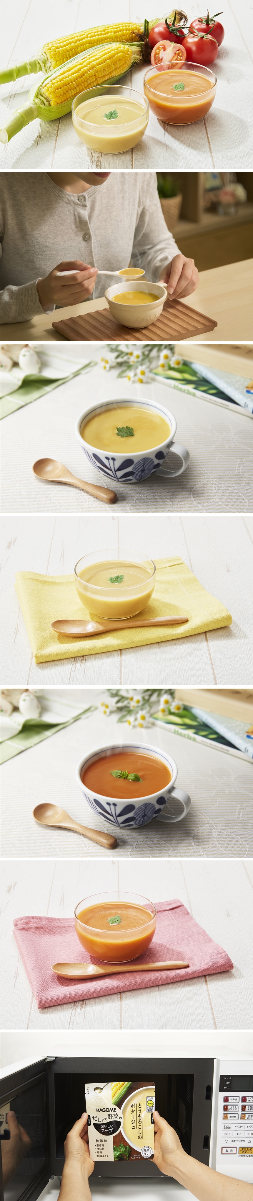 野菜の会社カゴメが手間ひまかけて作り上げた「野菜だし」を使い、だしまで野菜にこだわることで、野菜本来のおいしさを最大限に引き出したポタージュです。