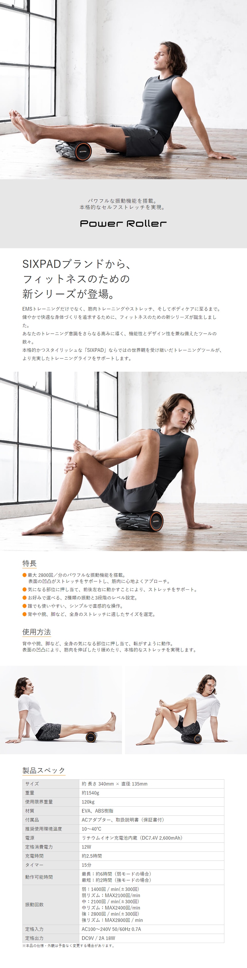 MTG正規品/SIXPAD Power Roller (パワーローラー)/SE-AB03L|パワフルな振動機能を搭載。本格的なセルフストレッチを実現。