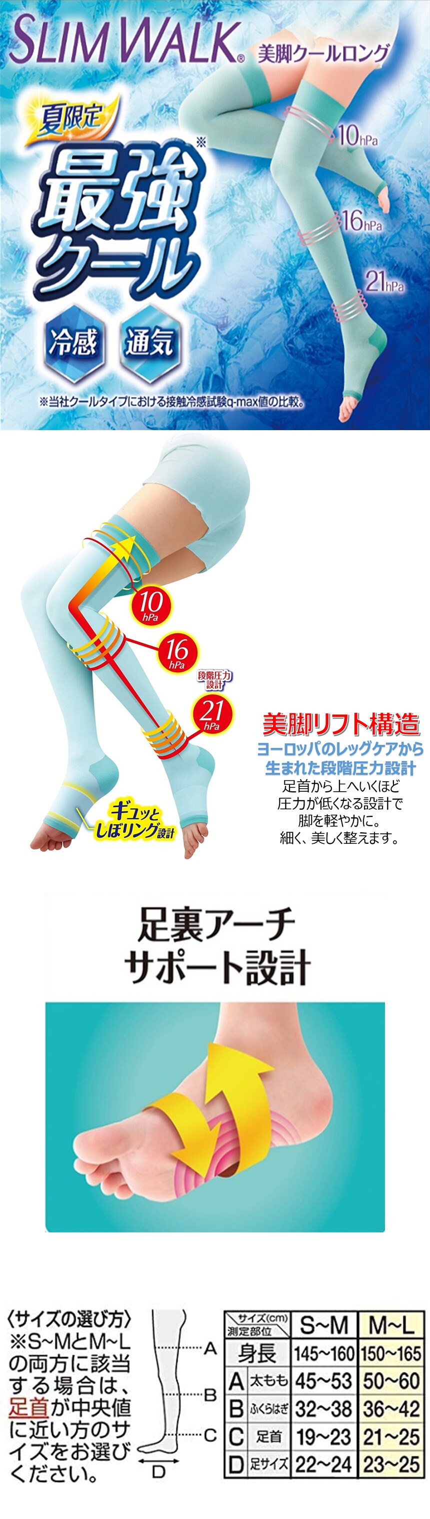 [5個]ピップ スリムウォーク美脚クールロング M-L | 冷房いらずの快適さ。翌朝、すっきり夏美脚。