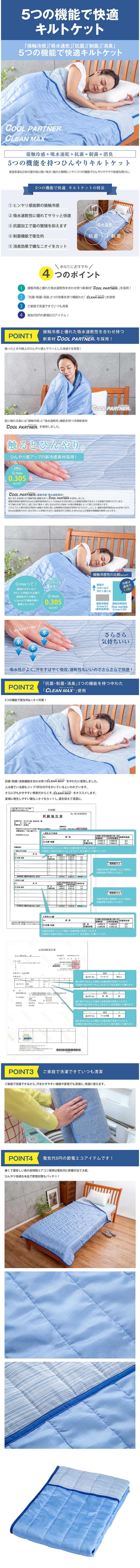 - 5つの機能 接触冷感ひんやり キルトケット (接触冷感・吸水速乾・抗菌・制菌・消臭)