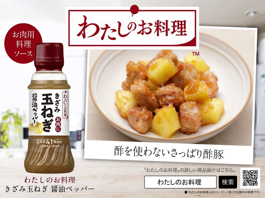[24本]ケイパック わたしのお料理 きざみ玉ねぎ 醤油ペッパー お肉に 200ml | シャキシャキとした玉ねぎの食感に香辛料のアクセントを加えたお肉専用のたれです。冷しゃぶや焼肉におすすめです。