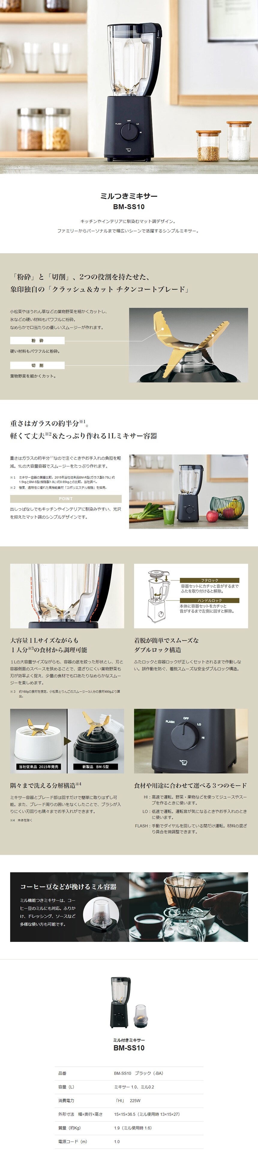 ※お届けの商品は[象印(ZOJIRUSHI)/ミル付きミキサー (ブラック)/BM-SS10-BA]となります。