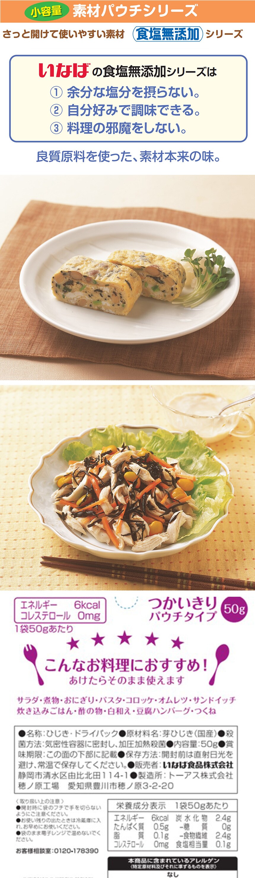 [2種計20個]いなば食品 食塩無添加パウチ ひじき 50g / ごぼう 40g