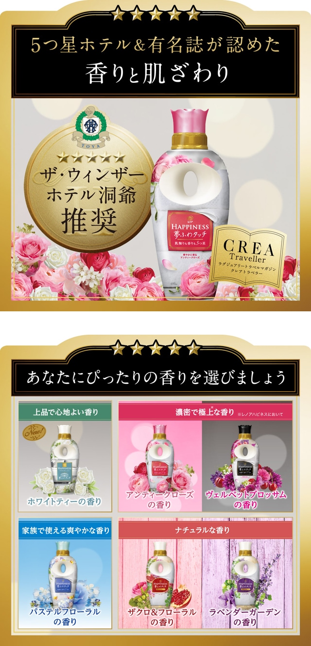 [2種計4個]P&G レノアハピネス 夢ふわタッチ 華やかに香るアンティークローズ 本体 480mL / 詰替用 超特大サイズ 1200ml | 5つ星HOTEL推奨~極上の香り、肌触り。