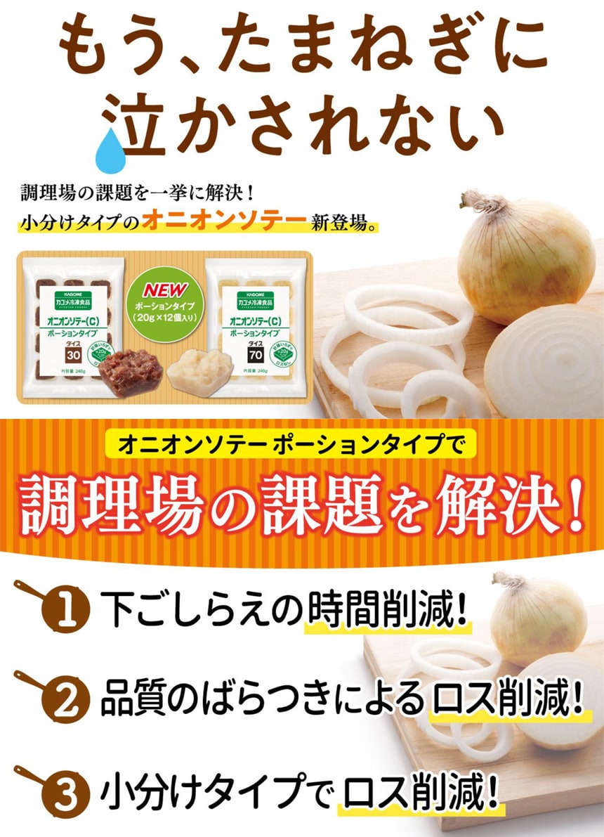 ●カゴメのオニオンソテーは生たまねぎを時間をかけて丹念に炒めました。