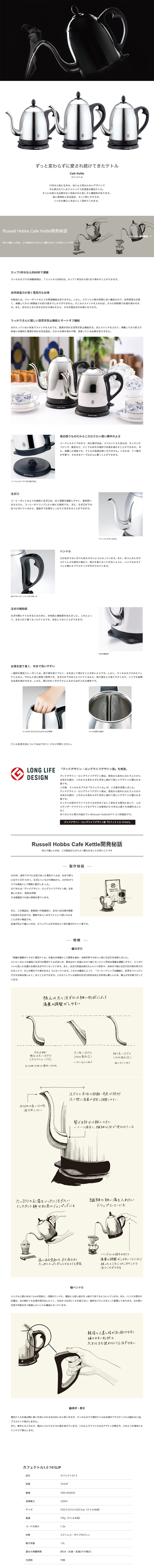 [1.0L]ラッセルホブス/カフェケトル1.0|10年以上前に生まれ、ほとんど変わらないデザインで今も愛されているクラシックでお洒落な電気ケトル。そこには変える必要のない完成された美しさと機能性がある
