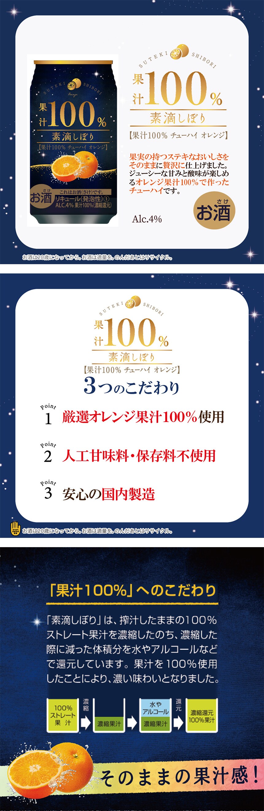 - 素滴しぼり果汁100%チューハイ オレンジ 350ml