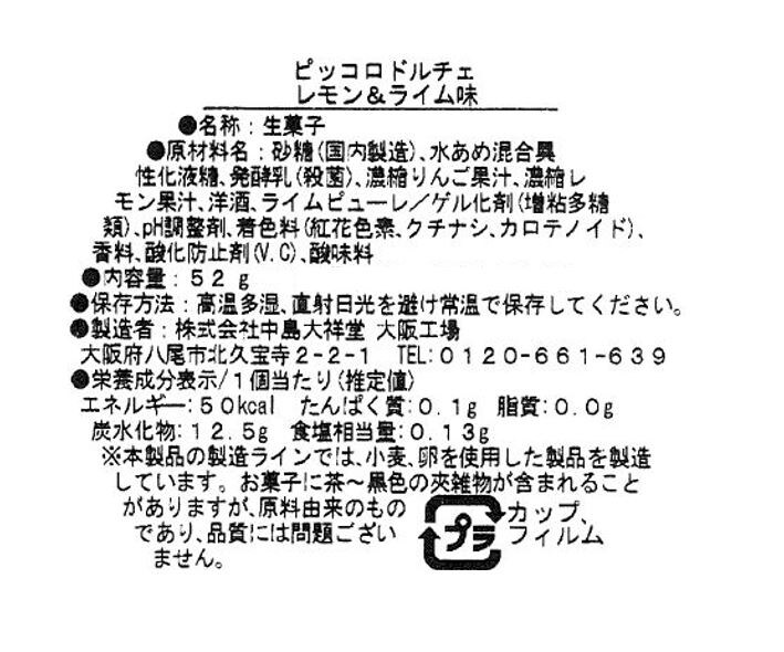 [48個]中島大祥堂 ピッコロドルチェ レモン&ライム味 52g | 小さなサイズに2つの味