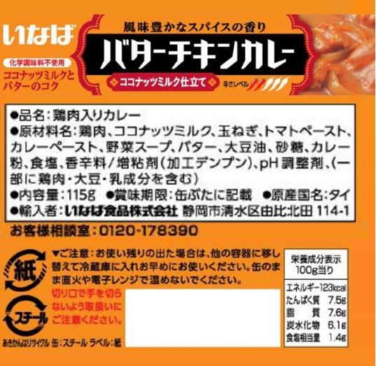 - ・バターチキンカレー 115g×24個 (賞味期限:2023/01/13)