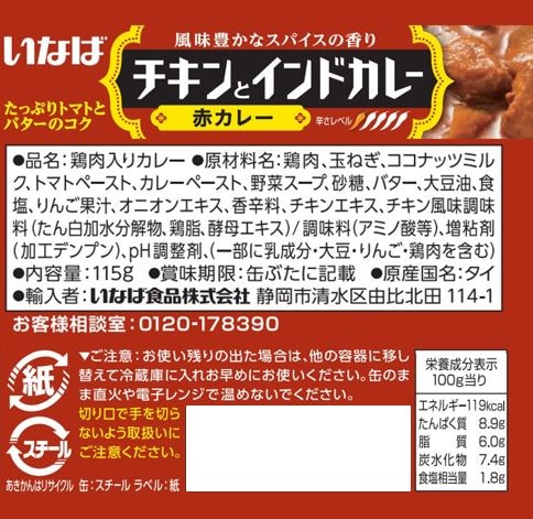 【チキンとインドカレー赤カレー】乳成分・大豆・りんご・鶏肉
