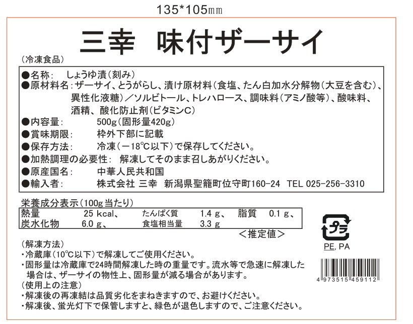 [計5kg]三幸 味付きザーサイ 500g×10個 | 色彩鮮やかなフレッシュ浅漬けザーサイです!