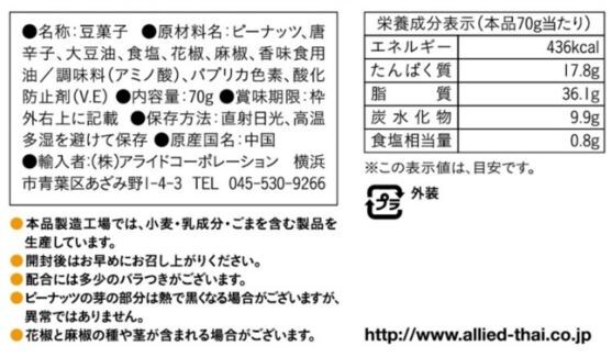 アレルギー表示:落花生、大豆