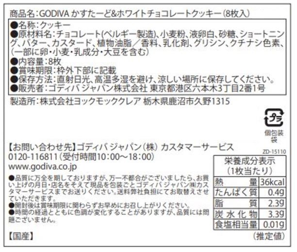 - GODIVA かすたーど&ホワイトチョコクッキー 8枚入