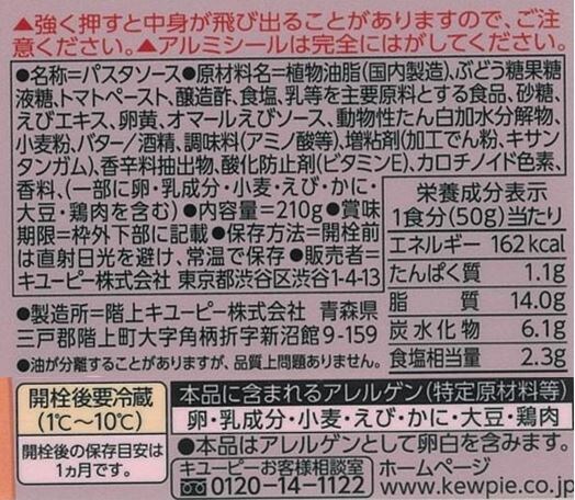 - キユーピー レシピひろがるパスタソース トマトクリーム オマール海老のアメリケーヌ仕立て 210g