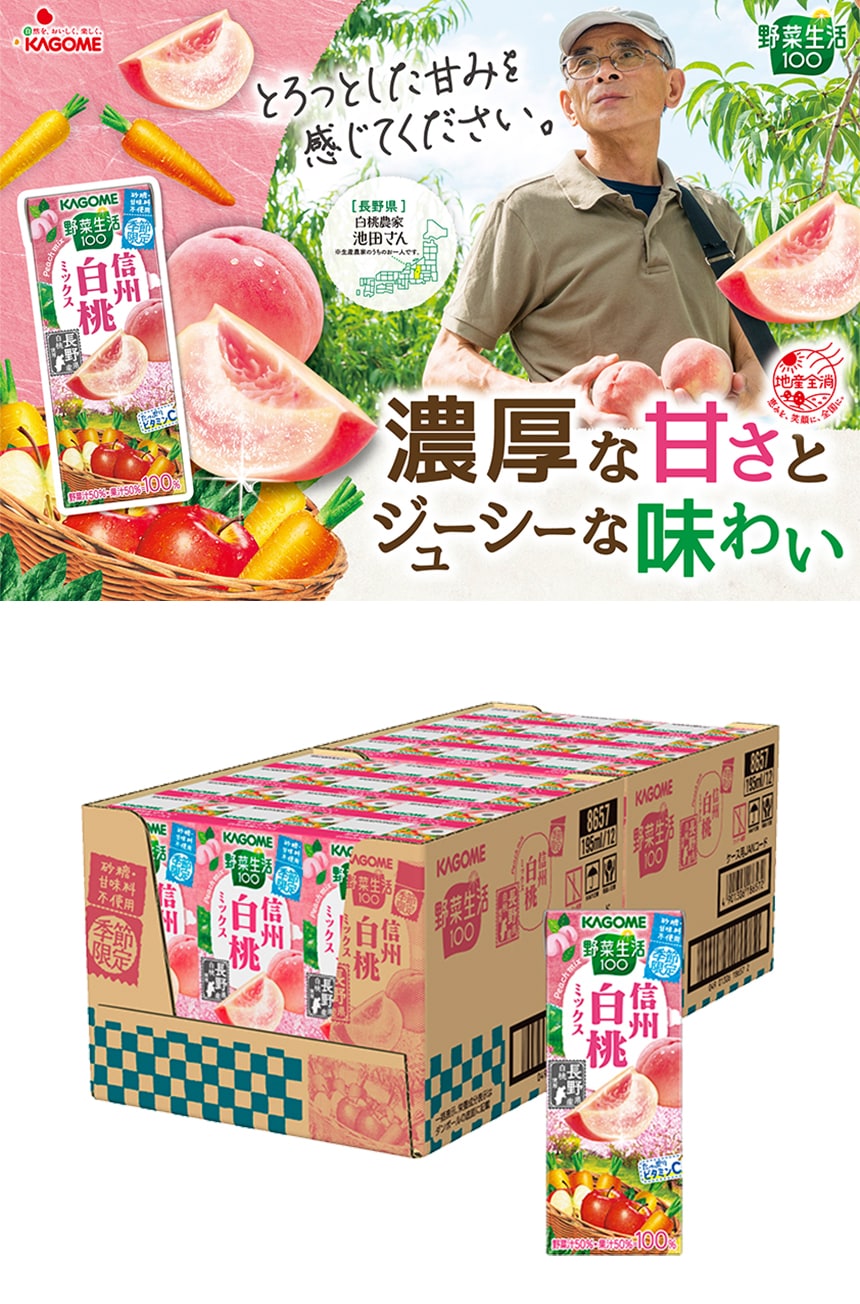 - カゴメ 野菜生活100(デコポンミックス 195ml/信州白桃ミックス 195ml/春のフルーツ 200ml)