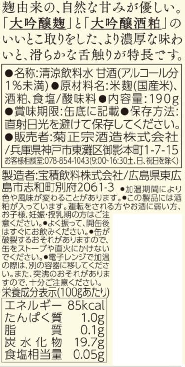 [30本]菊正宗酒造 大吟醸deあま酒 濃いめ 190g | 大吟醸麹と大吟醸酒粕のいいとこ取りをした、より濃厚な味わい