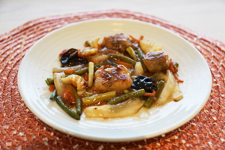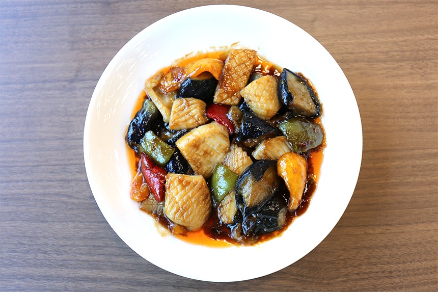 ふっくらと揚げた白身魚をサッと炒めて、黒酢と白醤油でコクと甘みが引き立つ特製あんを絡めて仕上げる中華炒めです。
