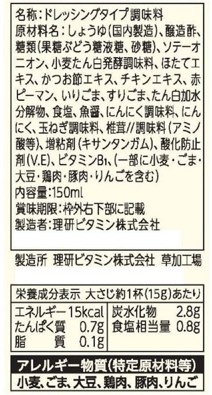 - リケンのノンオイルドレッシング セレクティ (あめ色玉ねぎ / こく仕立て和風)