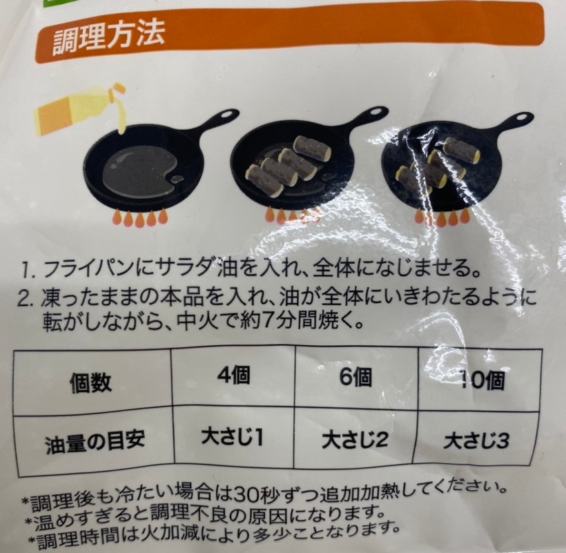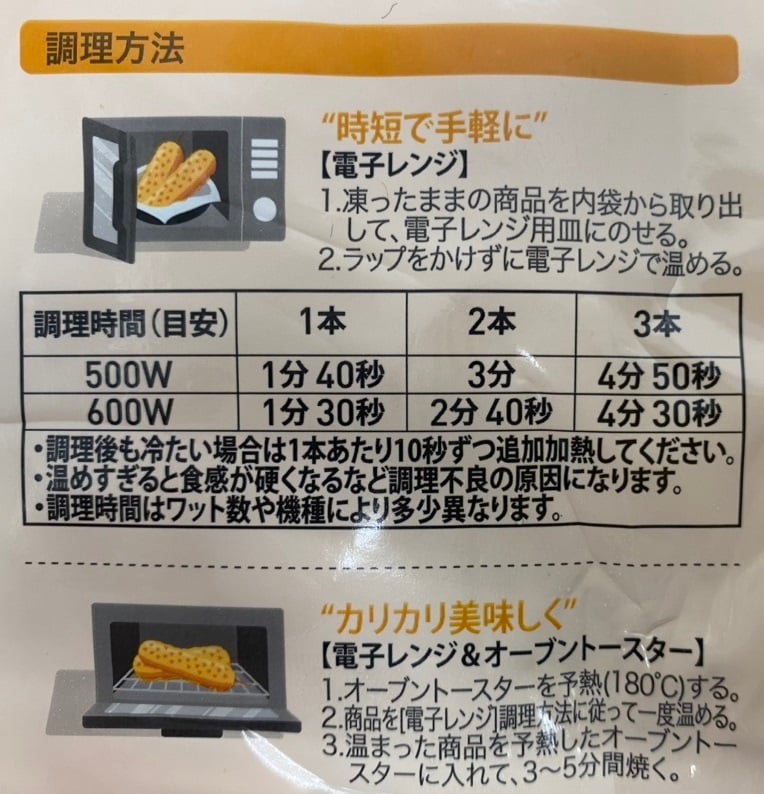 衣[ミックス粉(小麦粉、砂糖、食塩、その他)、パン粉(小麦粉、じゃがいも粉、玄米粉、その他)、卵白粉、メープルシロップ]、魚肉ソーセージ、チーズ、揚げ油(大豆油)/加工でん粉、ベーキングパウダー、pH調整剤、香料、炭酸Ca、イーストフード、乳化剤、着色料(コチニール、ビタミンB2)、香辛料抽出物、(一部に小麦・卵・乳成分・大豆を含む)