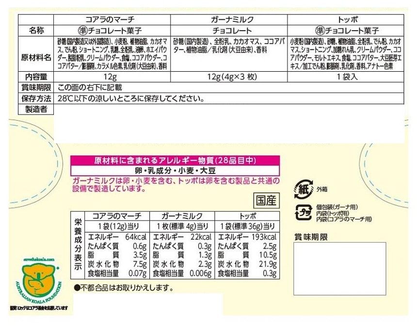 (コアラ12g・ガーナ4g×3枚・トッポ1袋)×24個 (賞味期限:2022/07/31)