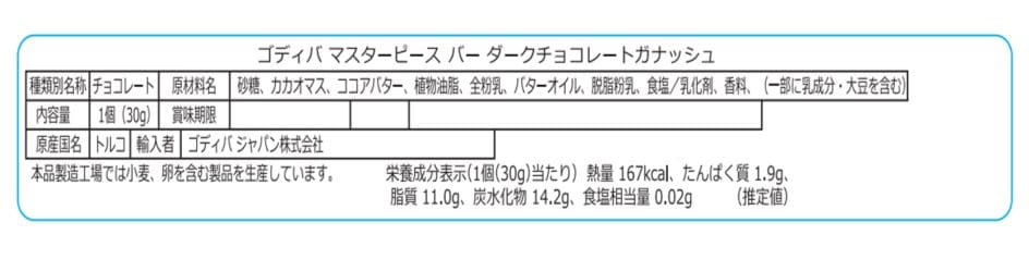 - ・マスターピース バー ダークチョコガナッシュ 1個×12袋 (賞味期限:2022/08/31)