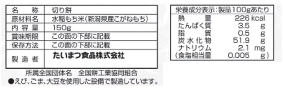 新潟県産こがねもち米を100%使用。