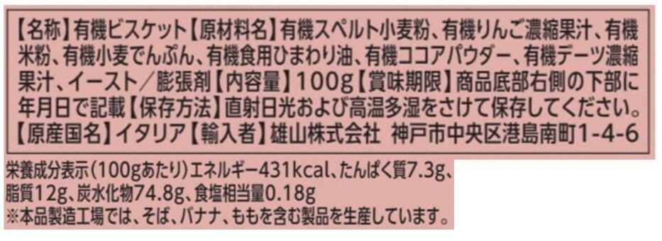 【ビオジュニア オーガニックココアビスケット】