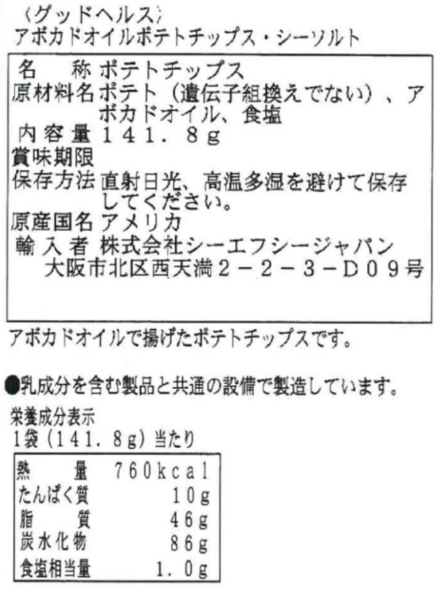 グッドヘルスのポテトチップスは良質のアボカドオイルのみを使用しております。
