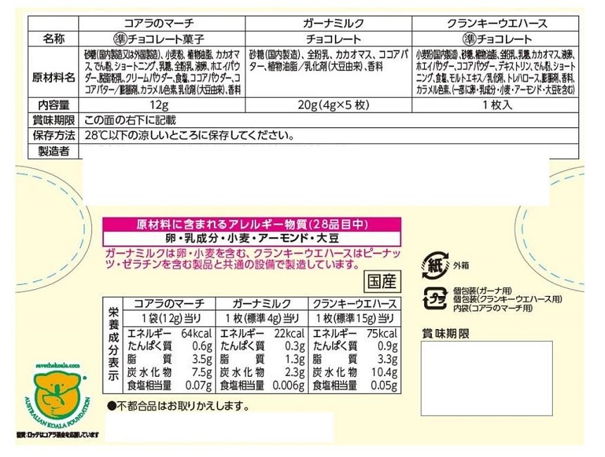 - (コアラ12g・ガーナ4g×5枚・クランキーウエハース1枚)×48個