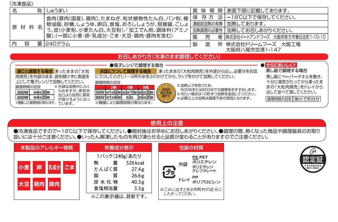[計120個]イートアンドフーズ 大阪王将 大粒肉焼売 240g(8個)×15袋 | 1粒30gの食べ応えある焼売。