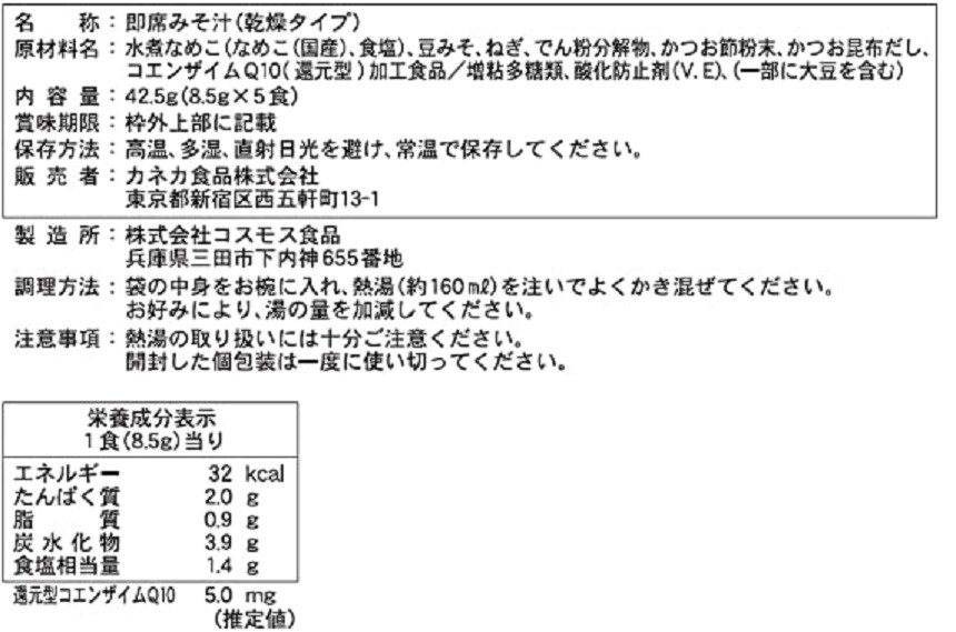 ・Q10みそ汁(なめこ) 8.5g×5食×4個 (賞味期限:2022/09/29)