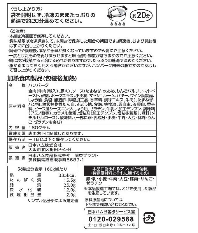 - ・肉汁あふれるデミグラスハンバーグ 160g×12個 (賞味期限:2022/11/08)