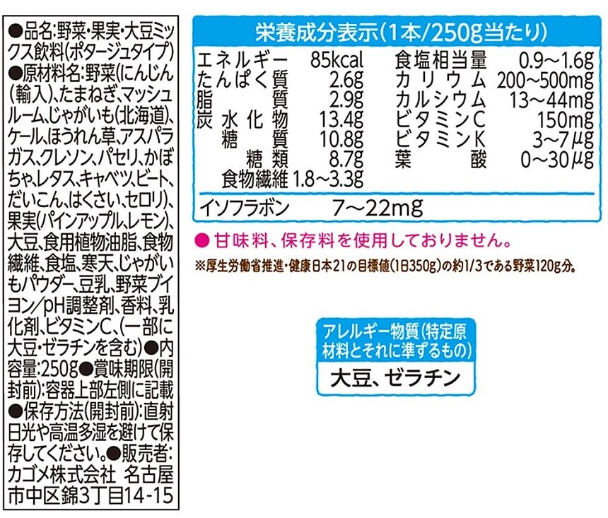 【カゴメ 1食分の野菜を使ったスイートコーンとさつまいものポタージュ】大豆