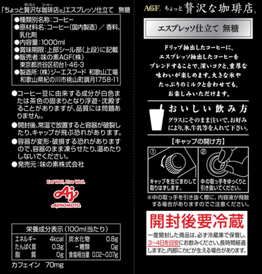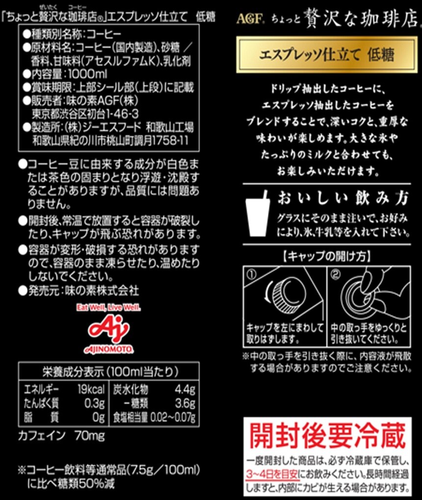 ・エスプレッソ仕立て 低糖1000ml×2本 - 賞味期限