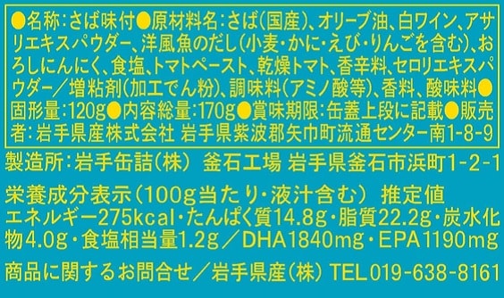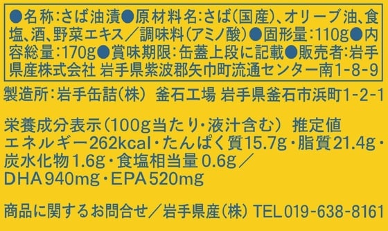 ・国産サバのオリーブオイル漬け 170g×8個 (賞味期限:2026/02/01)